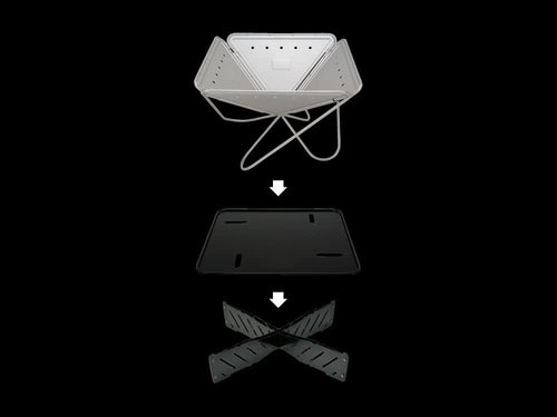 焚火台を地面から約10cm離し、焚火の熱が芝に与えるダメージを軽減します。シンプルな構造でセッティングも簡単。