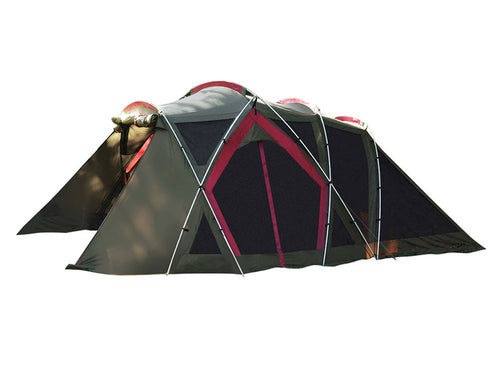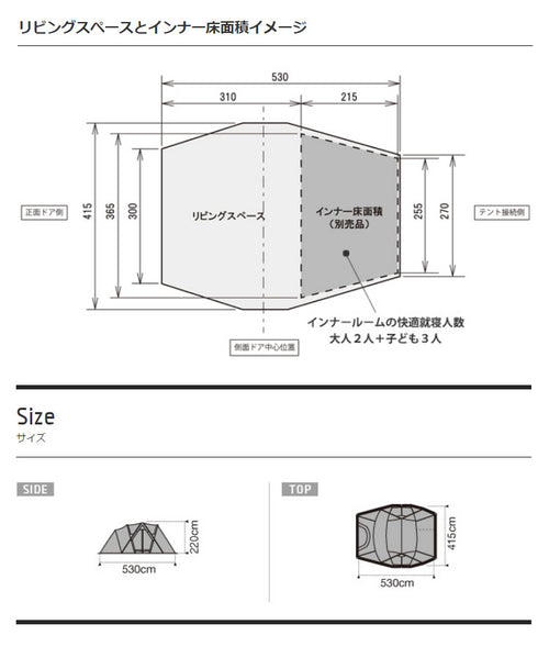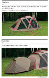 ●材質: 本体(フライ)/150Dポリエステルオックス・遮光ピグメントPUコーティング耐水圧3,000mmミニマム(ルーフ部)、150Dポリエステルオックス・PUコーティング耐水圧1,800mmミニマム(ウォール部)・テフロン撥水加工・UVカット加工、フレーム/A6061(φ16mm・19mm)