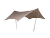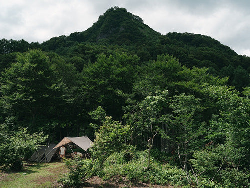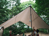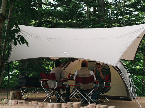 ランドネストドームに合わせてデザインした、長方形に近い六角形型。強度を保ちつつ、最大限の有効面積を確保しており、広い影をつくるのが特長です。日差しを遮り、雨や風を避けるタープは、快適なリビング空間としてキャンプに欠かせないアイテムです。