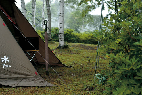 ソリッドステーク30のヘッド部に差し込む事で自立させることができるキャンプ用の傘。