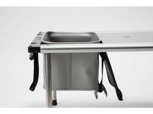 キャンプ用品を持ち運ぶウォータープルーフの収納バッグです。簡易的なシンクとしても使用でき、I G Tフレーム( CK-149)等に組み込むことができます。