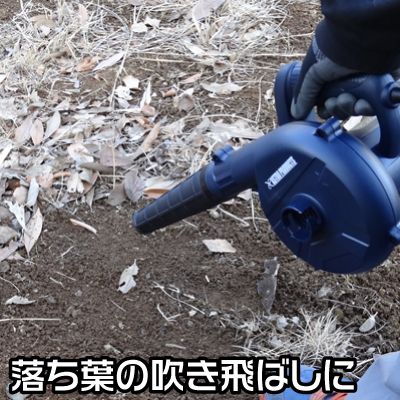 屋外での落ち葉や芝などの吹き飛ばしや、ホコリやチリ等のゴミの吸塵、水切り等に使用可能です。