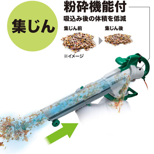 吸込み後の枯れ葉等の体積を低減する粉砕機能付。