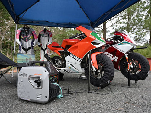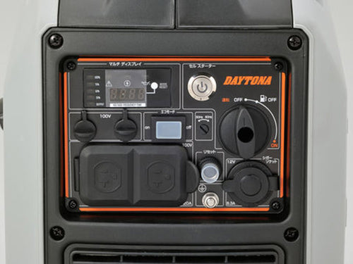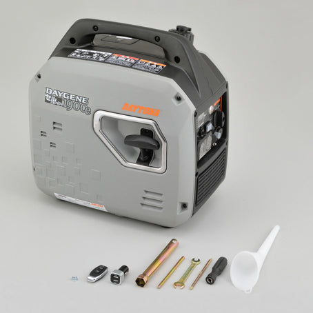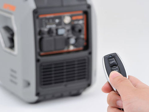 エンジン始動が簡単なセルスターター機能を搭載した出力1900Wの【DAYGENE 1900e】。「リコイル式の始動がチョット・・・」というご年配の方や、女性にも優しいリモコン式セルスターターでエンジンのON/OFFが簡単に操作可能になりました。 ※リモコン、本体操作パネル内のセルスターターボタンどちらでもエンジン始動可能です。