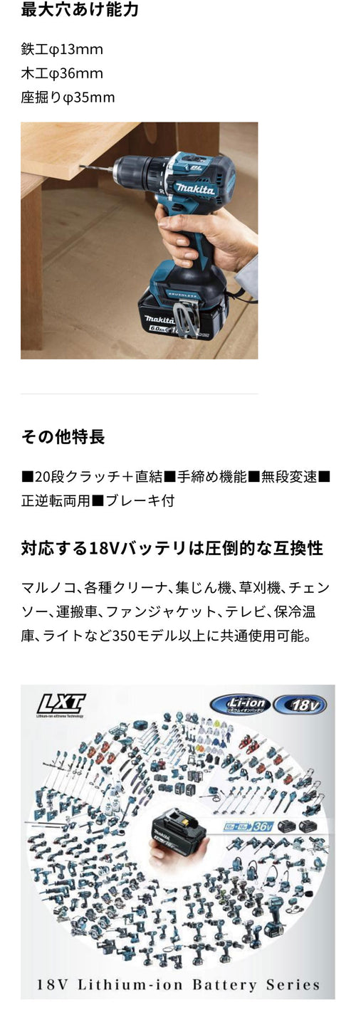| 1充電作業量(目安) | 木ネジ(材料ラワン) | φ4.1×38mm | 約1,900本(高速) |