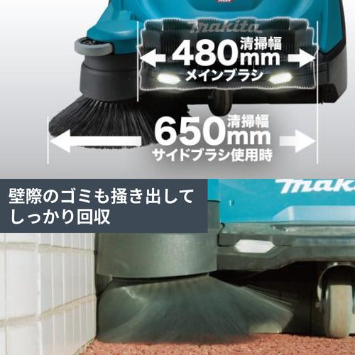 清掃幅は最大650mm(サイドブラシ使用時)。粉じんなどの細かなゴミから、落ち葉・ガラ・ペットボトルまで幅広く回収できます。