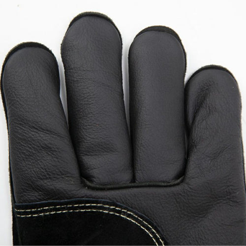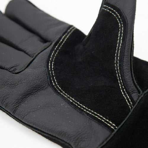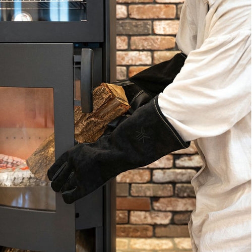 熱が加わっても硬くなりにくい牛革を採用した、 革が柔らかく手にフィットして薪をつかみやすいストーブグローブです。 手の平側は生地を二重にし、耐久性を高めました。 マットな光沢と起毛面の組み合わせにより、黒一色の中にもツートンのニュアンスがあります。 通常の一双に加え、片手のみもラインナップしています。