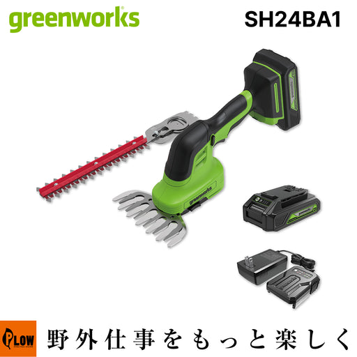 Greenworks グリーンワークス 24V 2WAYコードレスバリカン 150mm刈幅&200mmヘッジ刃 軽量1.7kg バッテリー充電器セット