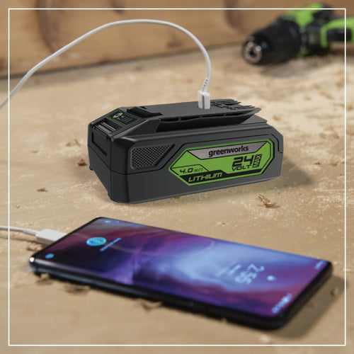 Greenworks グリーンワークス 24V 大容量リチウムイオンバッテリー 4.0Ah USB給電対応 60分急速充電