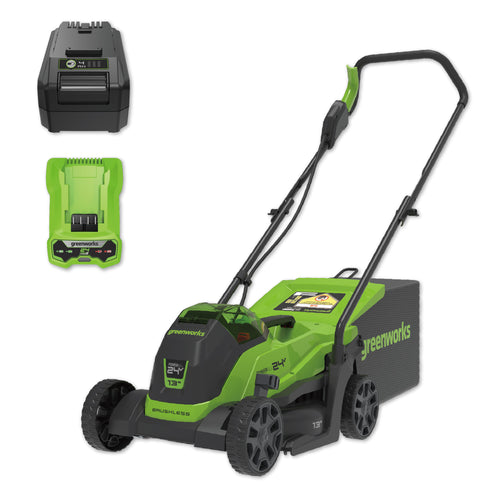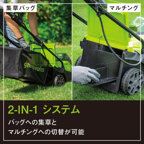 Greenworks グリーンワークス 24V コードレス芝刈機 33cm刈幅 マルチング対応 集草バッグ付 4.0Ahバッテリー急速充電器セット