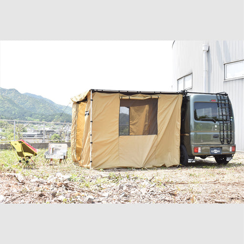 内容 カラー:サンドベージュ サイズ:2.5m×2.0m 商品詳細 ルームテント本体 取付けペグ×6本 ※本商品の取付けにはサイドオーニングが必要となります。 |