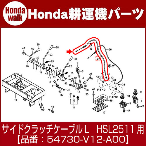 ホンダ除雪機純正パーツ サイドクラッチケーブルL 対応機種HSL2511 【品番54730-V12-A00】