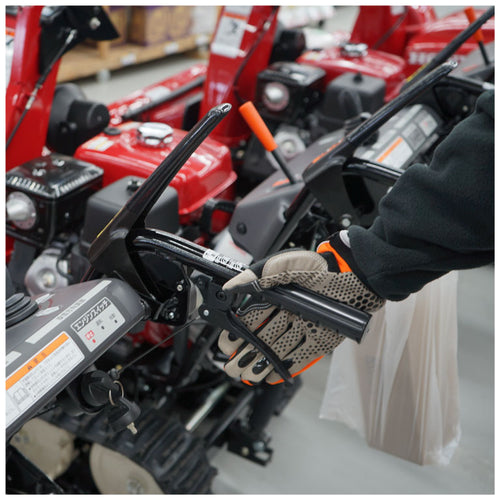 安心クラッチレバー 走行クラッチから手を離すと、オーガと走行が停止します。 ※SB690は緊急時にエンジンを停止させる緊急停止装置を装備 |