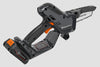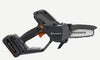 工具不要で簡単にチェンとバーを交換でき、滑り止めハンドルと3分使用しないと自動的に電源オフになる安全設計。