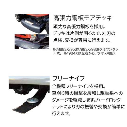 ※最大能率は速度と刈幅から算出した理論値です。実際の作業能率を保障するものではありません。 ※道路及び一般交通に供するような場所(農道・林道・公共広場等)では走行できません。 |