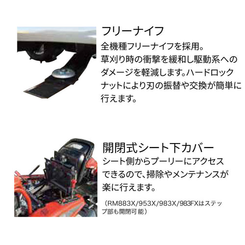 ※最大能率は速度と刈幅から算出した理論値です。実際の作業能率を保障するものではありません。 ※道路及び一般交通に供するような場所(農道・林道・公共広場等)では走行できません。 |