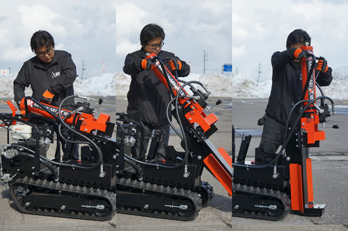 まさに日本人が使いやすい自走式薪割り機です。