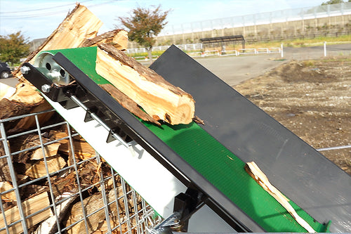 セルスタータをはじめ、利便性の高い機能を多数実装したGWP17。チェンソー・薪割り機・ベルトコンベアーが一体となったワンストップマシン。一連の流れで薪づくりがスムーズに行え、力強い破砕力をはじめ素早いサイクルタイムも実現しました。