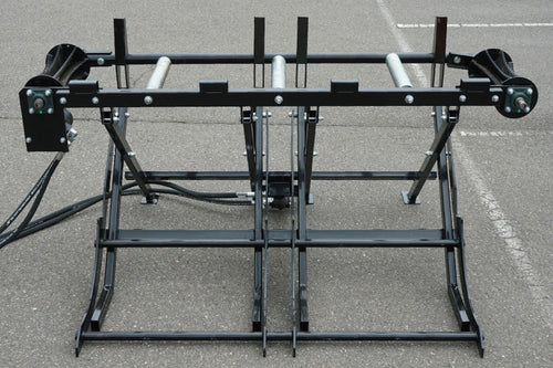 油圧式のリフトログローダー。重くて長い木材を持ち上げずにプロセッサー本体に搬送できるのが最大の特徴です。