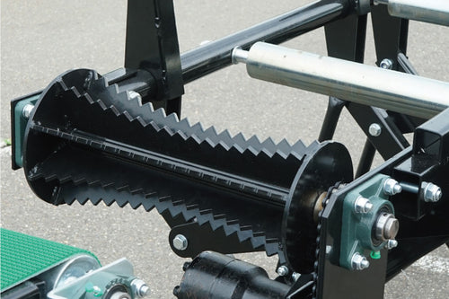 強力な力でプロセッサー本体に木材を搬送させるスパイクローラー。こちらも油圧式なので少ない力で作業が行えるのが特徴。