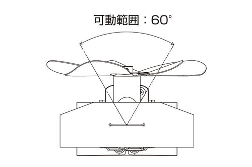 首振りの可動角度は60°、80℃以上で作動する仕様です。