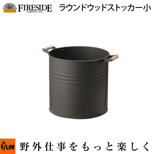 大は鉄、小は木製の取手つき。くずが落ちない薪入れとして、また、プランターカバーとしてもオススメです。