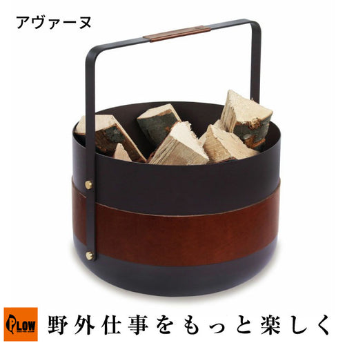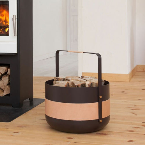 パウダーコーティングによるマットなボディの質感と、 スウェーデンの名門革工房Tärnsjöで製造されたオーガニックレザーを組み合わせた高級感ある薪入れです。