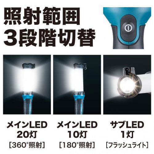 高輝度LED360°照射、先端ライト、USB機器充電可能。
