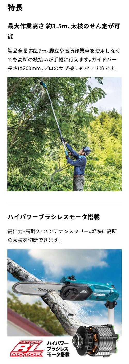 マキタ 充電式高枝チェンソー200mm【MUA200DZ】