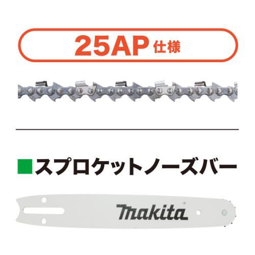 マキタ 40Vmax 充電式チェンソー(赤) スプロケットノーズバー(350mm 1.3mm) 25AP【MUC018GZR2】【M350A】本体ノミ