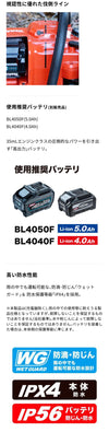 | 推奨バッテリ | BL4040 | ○ |
