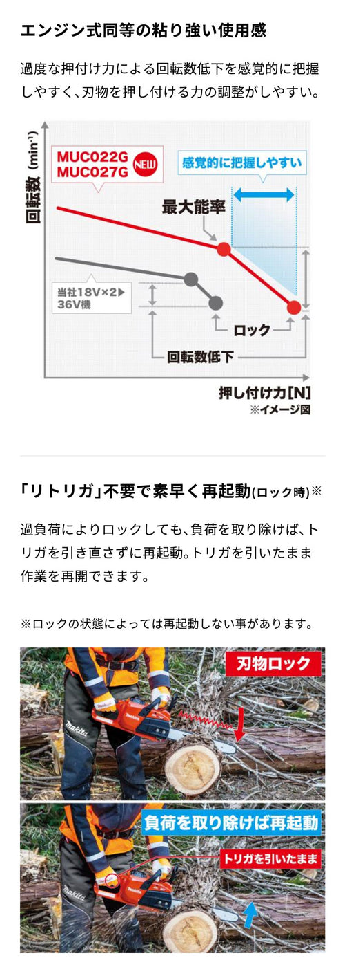 | ※質量の補足 | ※チェーン刃、ガイドバー、バッテリBL4050F含む。 | |