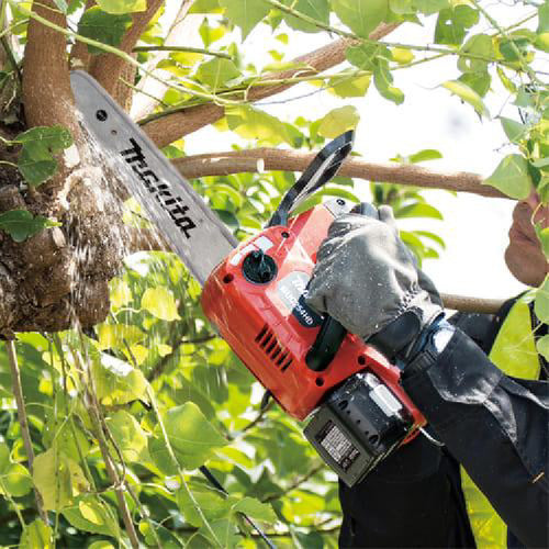 23mL(当社比)エンジン式と同等の使用感。軽量2.9kg(MUC204HDバッテリ含)、高回転チェーンスピード1,440m/分。