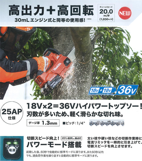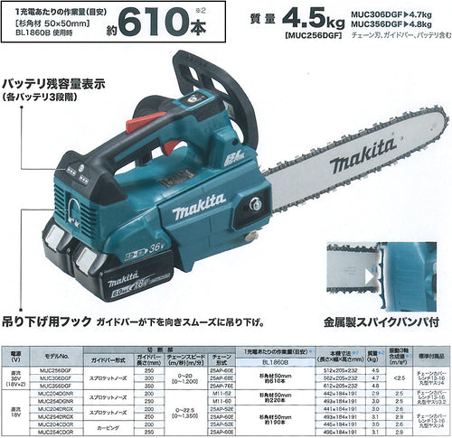 ※マキタ 充電式トップハンドルチェンソー MUC356DGF ガイドバー350mm (バッテリーBL60Bx2個 充電器dc18RD 付)