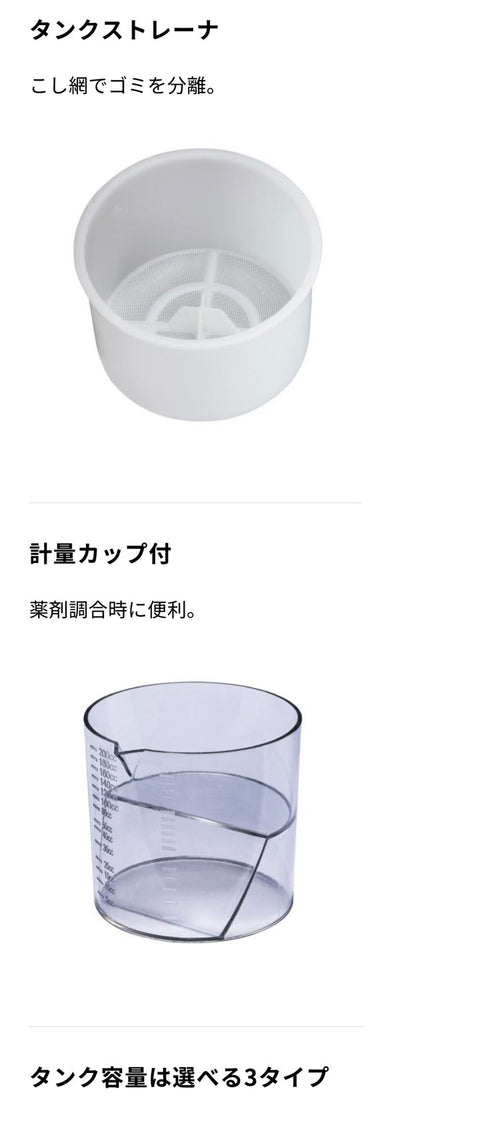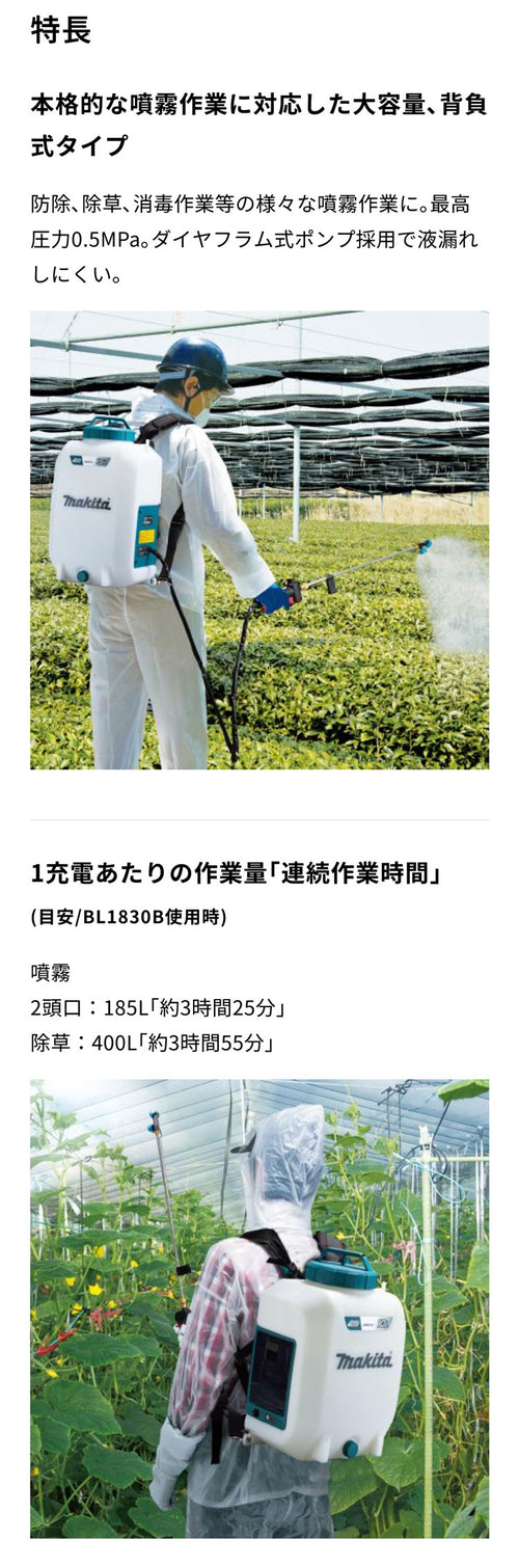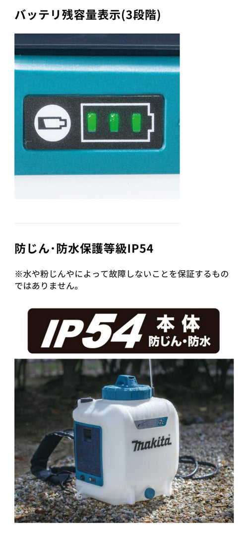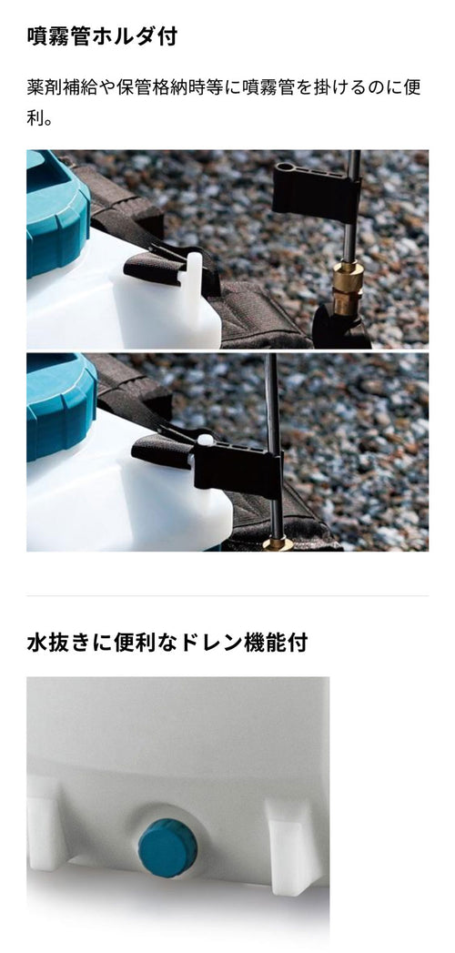 | ※質量の補足 | ※バッテリ含む、ノズル、噴霧管、噴霧管ホルダ除く。 | |
