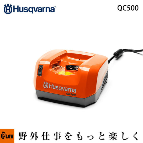 ハスクバーナの急速充電器QC500は、ハスクバーナの背負い式Li-ionバッテリー BLi940Xと携帯用Li-ionバッテリーBLi300の高速充電用に最適化されています。主電源電圧は、100-240V、500Wのパワーで、BLi300を1時間で満充電に、またBLi940Xを2時間25分で満充電にします。