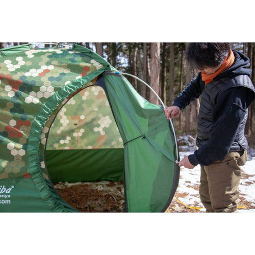 テントとストーブで構成され、フィールドでサウナ浴を楽しむために必要な機能の全てが、バックパックに収納されています。