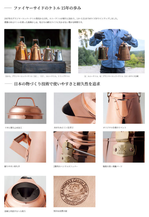 銅は熱伝導がよく、底広のデザインによってお湯が早く沸くため、冬の暮らしに大活躍。
