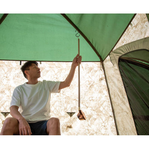 柄長85センチで遠くのストーブにも水をかけることができ、インパクトのある見た目でサウナ室の話題をさらいます。