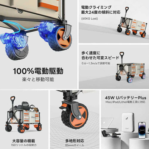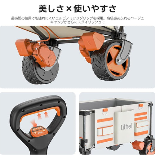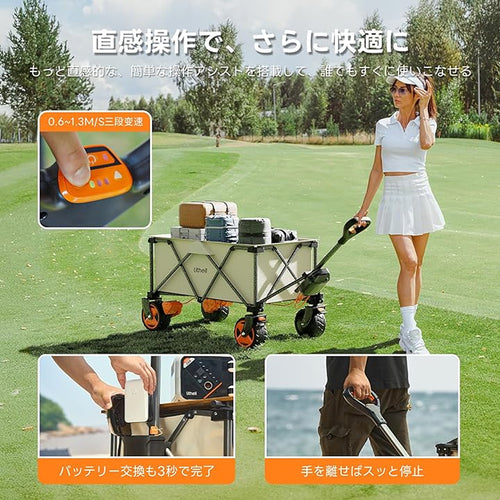 Litheli独自のUltraSpeed Power Systemを搭載し、最大出力は900W、0.6~1.3m/sの三段変速が可能。路面状況に応じてスムーズにスピードを調整できます。身長や荷物量に合わせてお好みの速度設定も簡単です。