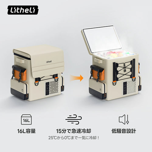 Litheliの車載冷蔵庫は、省エネ性にも優れた高性能コンプレッサーを搭載して、わずか15分で25℃から0℃まで冷却可能。冷却温度は-20℃から20℃まで調節可能で、生鮮食品や冷凍食品、飲み物などを最適な温度で保管できるため、屋外でも美味しさと新鮮さをキープできます。見やすいLEDコントロールパネルで、℃と?の切り替えが可能、温度管理が簡単です。