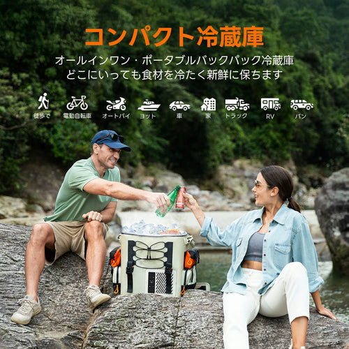 業界初のバックパック型冷蔵庫として、両肩に背負うことができ、両手を自由に使えるので、移動中でも便利に使用できます。キャンプ、ハイキング、車中泊など、様々なアウトドアシーンでの持ち運びに最適です。5つの収納ポケットで小物の整理しやすいです。