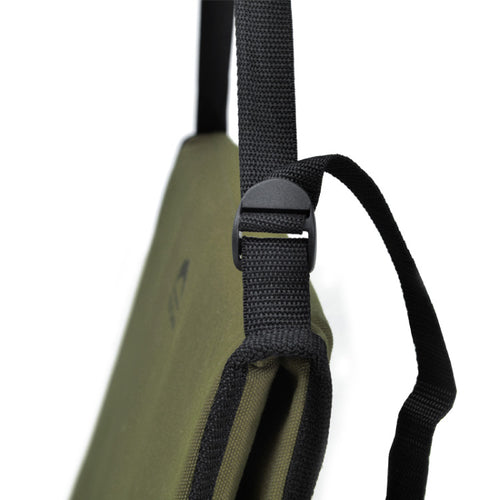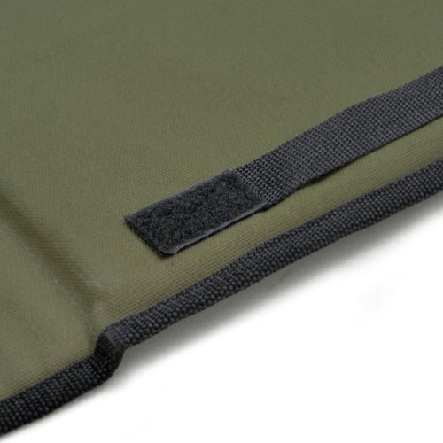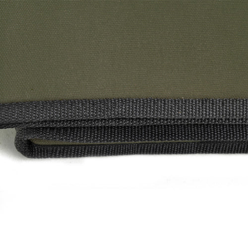 生地には防水性・耐摩耗性に優れた500Gキャンバスを採用。厚みのあるステンレススチール製フレームは120kgまで支えられる高い耐荷重を誇り、安定感抜群です。背面には大型ファスナーポケットを装備し、貴重品を安全に収納できます。