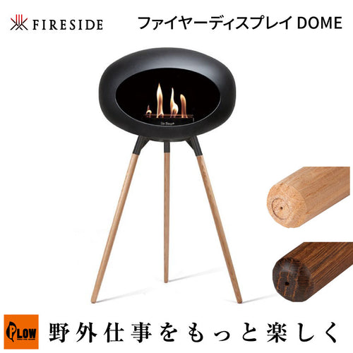 Le Feu DOMEは、バイオエタノールを燃料とした三脚型のファイヤーディスプレイです。滑らかな手作りの木製脚が特徴で、高い視点で炎を楽しむことができます。 特徴的なファイヤードームから望む炎の輝きが暖かく親密な雰囲気を作り、穏やかな揺らぎがリラックスした空間を生み出します。