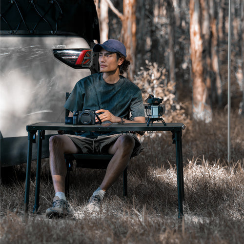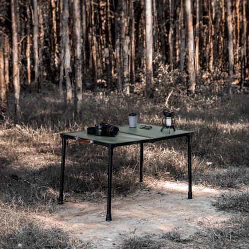 Wild Land MTS-Camping Tableは、2023年新シリーズのアウトドアファニチャーです。ほぞ・ほぞ穴構造を採用した折りたたみ式の軽量アルミ製テーブルで、コンパクトに梱包できるため持ち運びや収納に便利です。