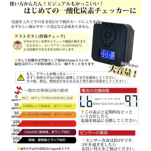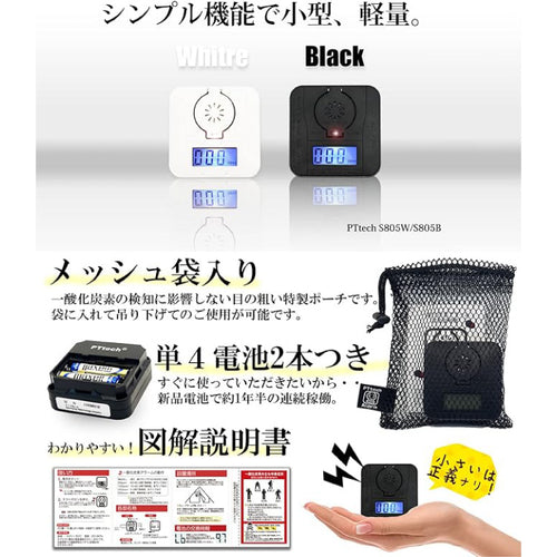 PTtech 一酸化炭素チェッカー ブラック PT002B
