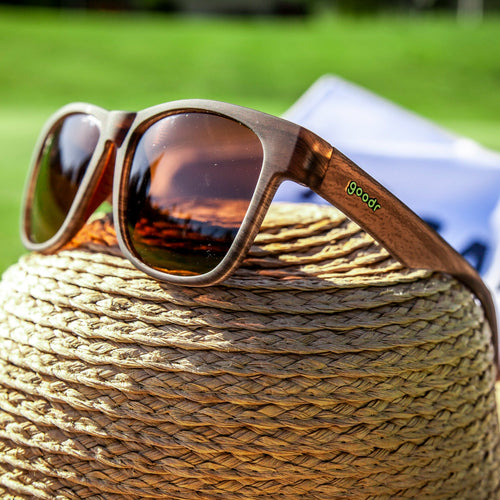 - 馴染みの良い木目調デザイン。ハイコントラストレンズ採用で、ゴルフにも◎