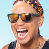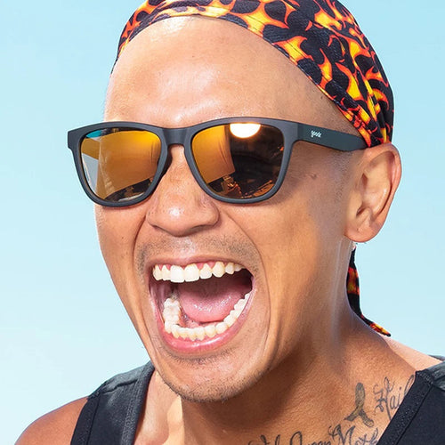 ブラックフレームにウィスキーみたいな琥珀色ミラーレンズ。強めなお酒が好きな方に🥃