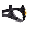 -あご紐『デュアル』により、作業環境によってあご紐の強度設定を変更できます: 高所作業用 (EN 12492) 、地上作業用 (EN 397) あご紐『デュアル』には用途に合った2つのポジションがあります: 墜落中にヘルメットを失くすリスクを抑えるための高強度、地上にいてヘルメットが引っかかった場合に頸部が締め付けられるリスクを抑えるための低強度