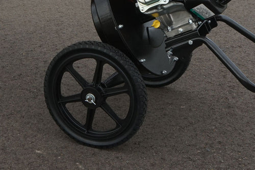 直径35cmの大型タイヤで段差のある場所もラクラク移動が可能です。パンプレスタイヤなので荒れ地も安心